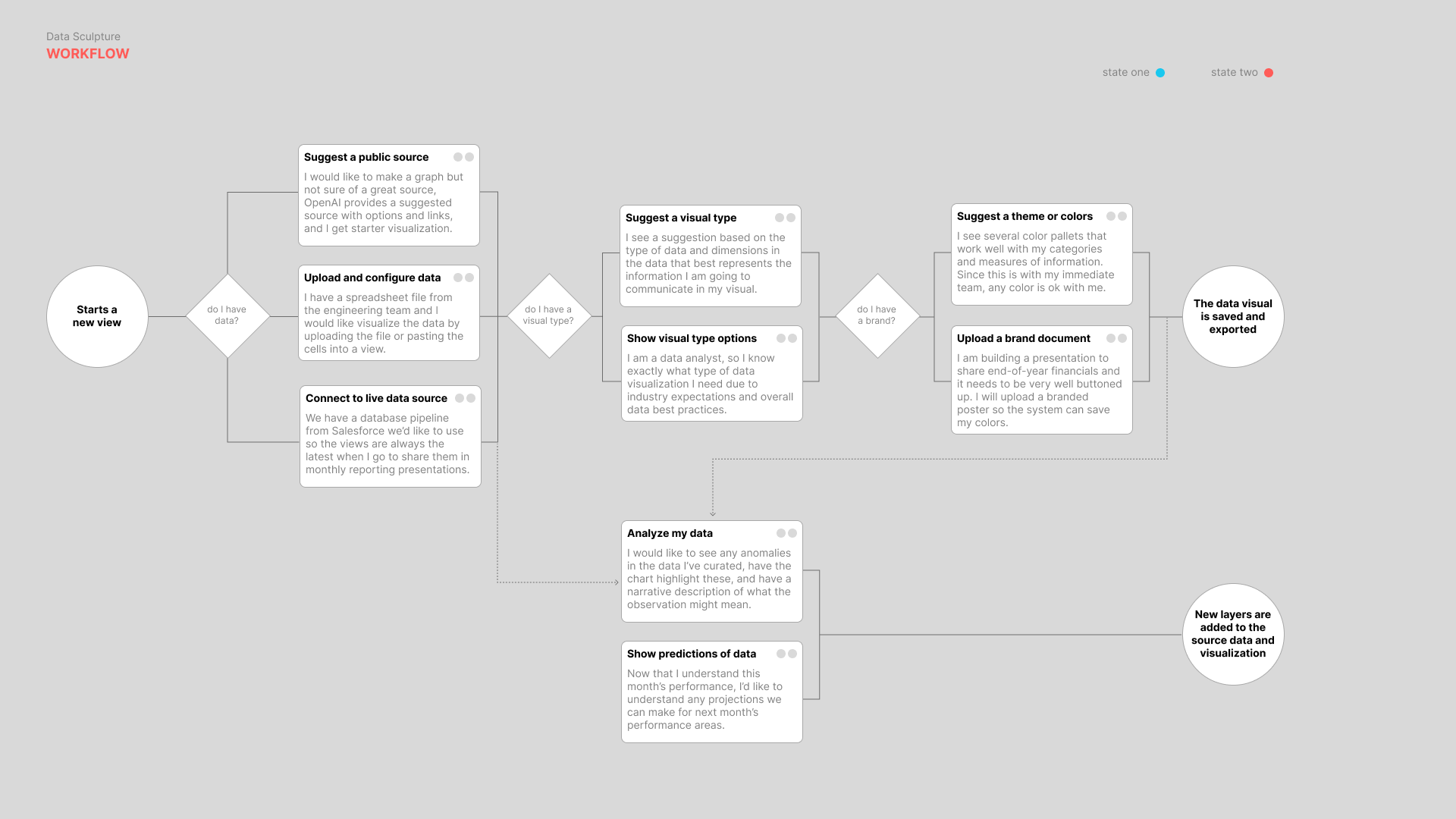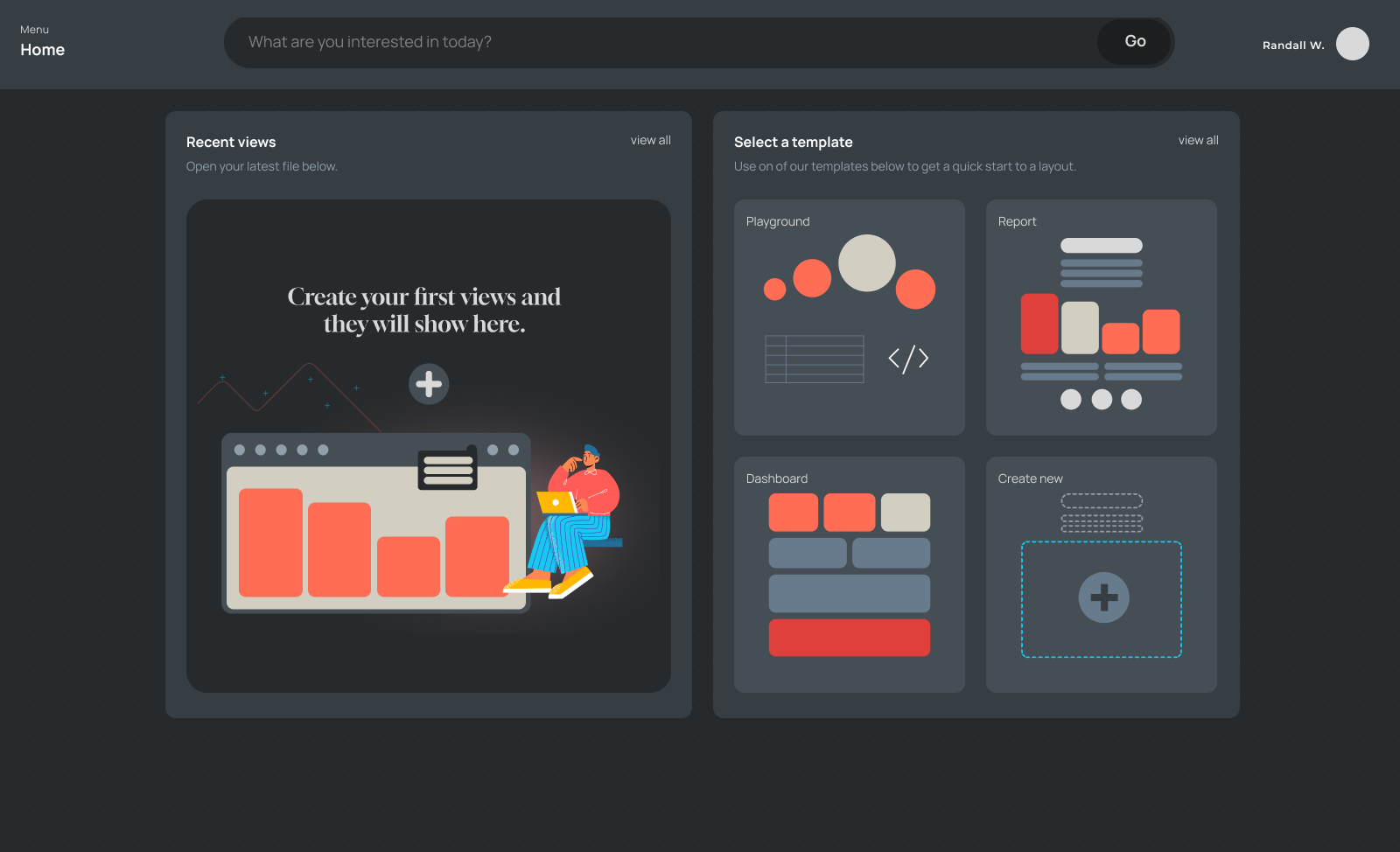 Create a tool that allows for the everyday worker to upload data, utilize best practices in data communication, and collaborate with others. We want to create a tool that allows people to try different visuals in a non-destructive way, the add a verbal narrative describing findings, takeaways, and action items. A place where a team of people are in the same view in real-time, working together and looking at the same things. To create a tool that sources common and publicly available information to quickly build views and data-driven artifacts, and to do it with confidence.