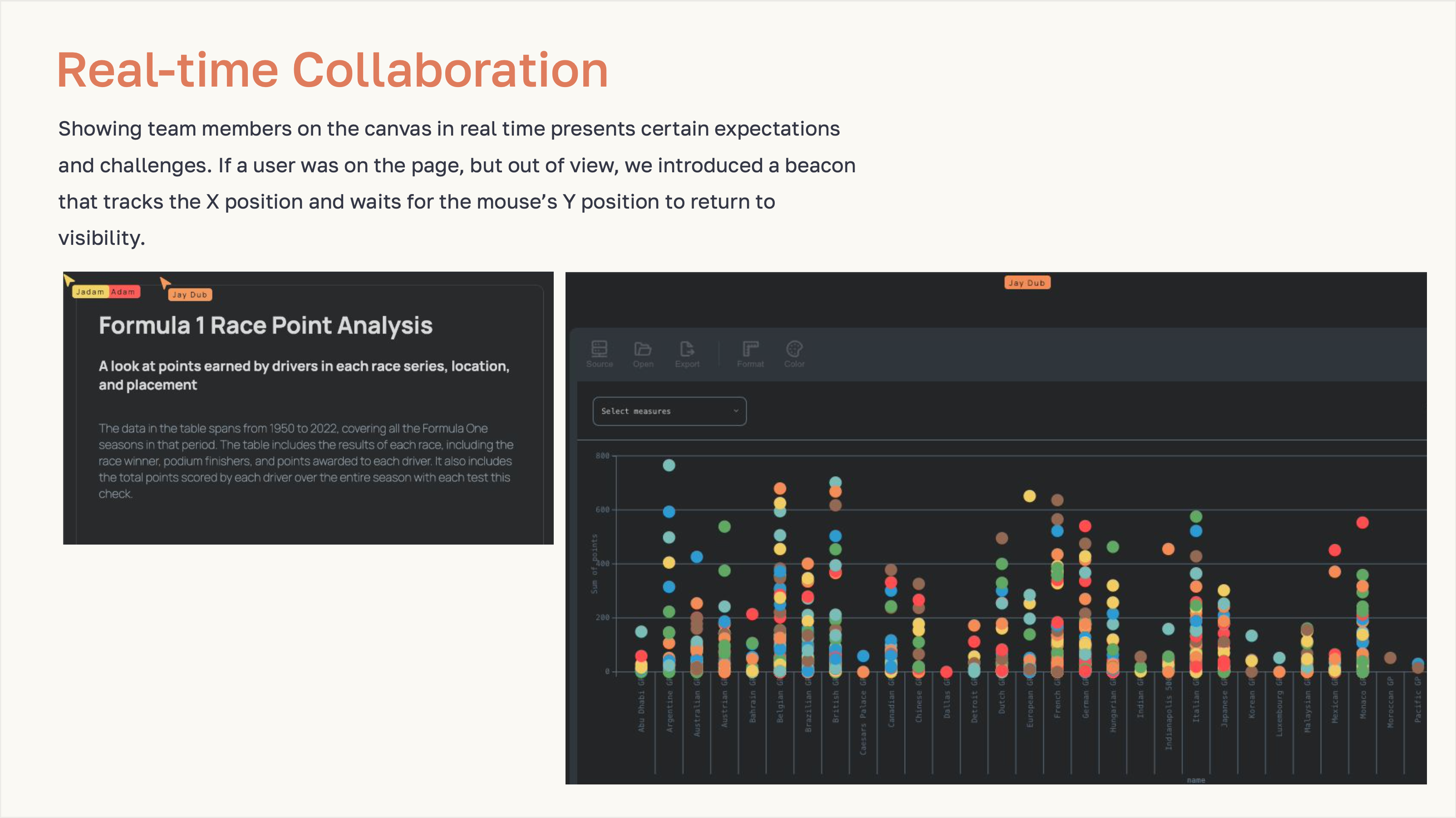 Most teams in todays workplace have a high appetite for data-oriented decisions, but they lack the access to their data, or the ability to properly shape it into a compelling narrative that moves stakeholders. Entire companies may have only one or two employees with a creator license to data analysis tools, and they are backed up many weeks before they are able to build new views for team members. Additionally, the market is spilt in two categories, 1) SAP-like large data aggregators with poor usability and static views, and 2) Canva-like marketing design tools which have little data integrity and no analysis functionality.